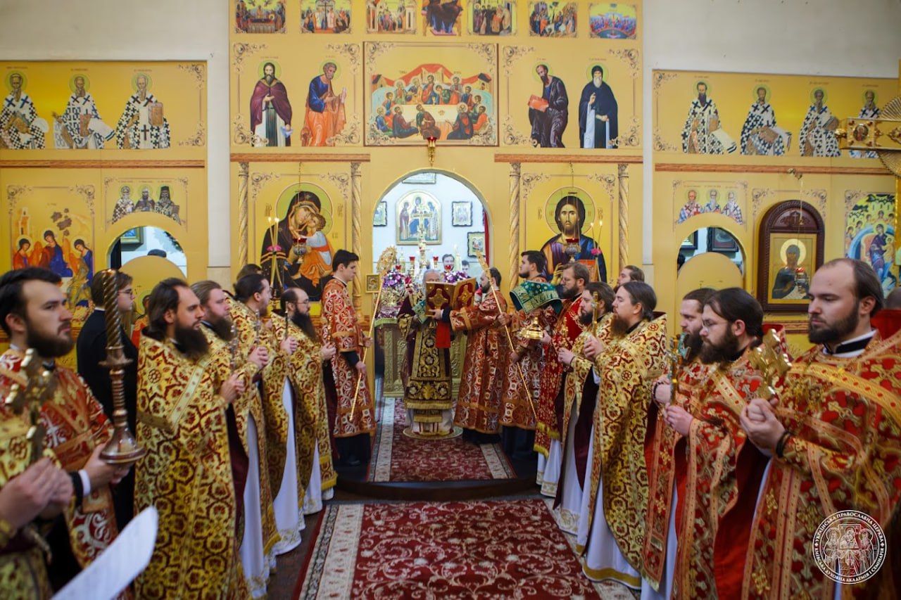 По окончании литургии перед иконами преподобного Иоанна Дамаскина и святой великомученицы Варвары совершили чин славления. Блаженнейший владыка поздравил всех с престольным праздником и призвал на паству Божие благословение.