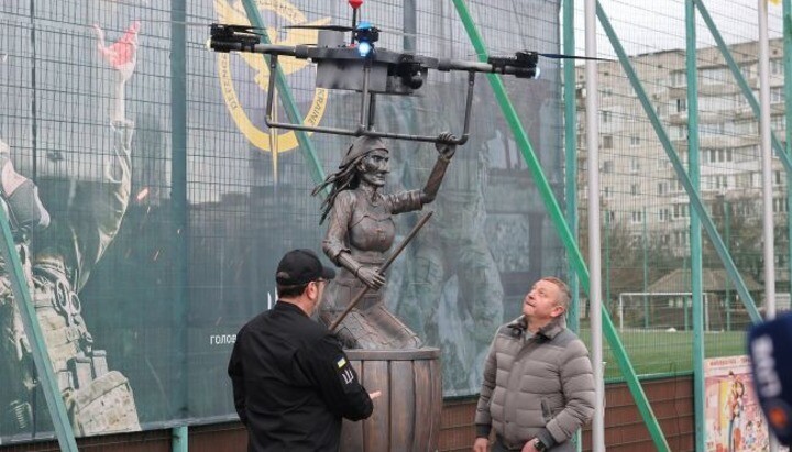 Памятник Бабе Яге с дроном. Фото: РБК-Украина Памятник Бабе Яге с дроном. Фото: РБК-Украина