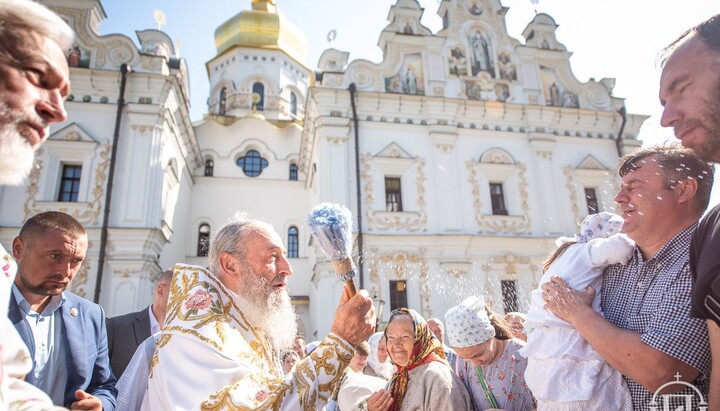 После литургии Предстоятель совершил освящение плодов из монастырского сада Киево-Печерской лавры. Архипастырь окропил святой водой паству, а также виноград и фрукты, которые принесли верующие.