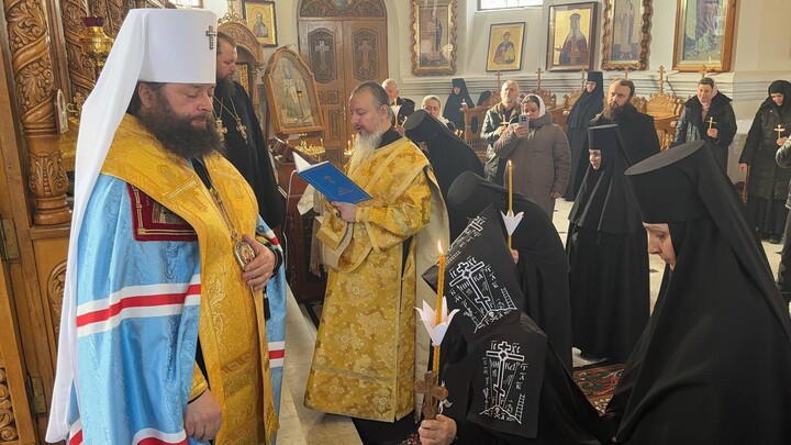 Перед чином пострига по благословению митрополита Черновицкого и Буковинского Мелетия иерарх совершил Божественную литургию в обители.