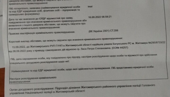 22 сентября 2022 года сторонники ПЦУ вместе со своим «духовенством» осуществили попытку захвата Николаевского храм УПЦ в Попельне Житомирской епархии.