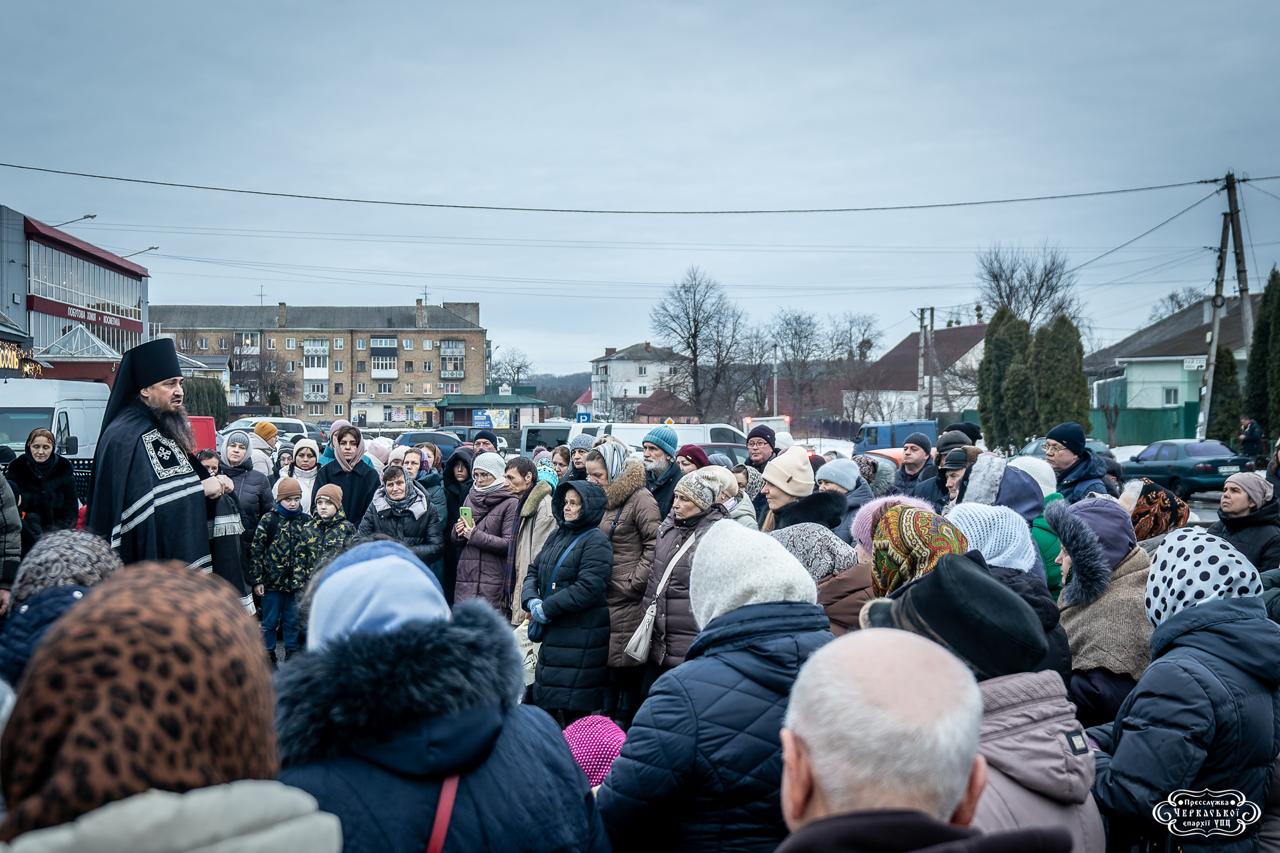 Епископ Антоний совершил покаянный канон с верующими у закрытого храма в Черкасской епархии УПЦ.
