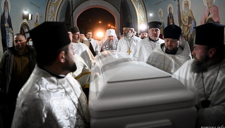 «Они вопреки его воле, его завещанию, которое было подписано самим патриархом и опубликовано на видео, пытаются сейчас присвоить тело и совершить чин отпевания», – заявил Никодим. Согласно духовному завещанию Филарета, он просил отпеть его именно во Владимирском соборе, а чин погребения должны были совершать исключительно архиереи УПЦ КП.
