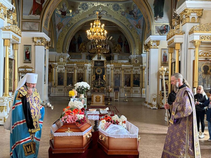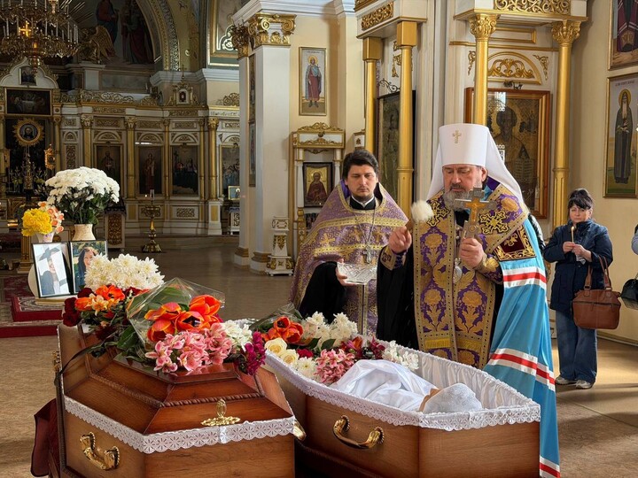 Чин отпевания совершил митрополит Херсонский и Таврический Иоанн. За богослужением молились родные, близкие и прихожане, пришедшие проститься с погибшими.