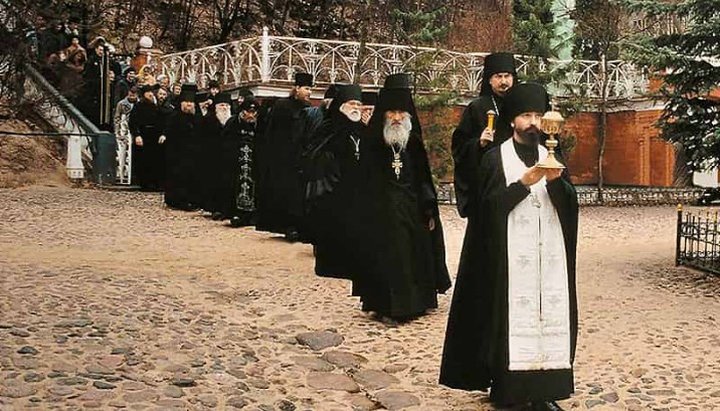 – Чин о панагии совершается по окончании Литургии в воскресные и праздничные дни. Богородичная просфора кладётся в специальный сосуд (панагарь), который переносится в трапезную. Переносит просфору, как правило, чередной (служащий, седмичный) священник, за ним следуют наместник монастыря, братия в священном сане по старшинству, монахи и послушники. В трапезной сосуд с просфорой полагается на особое место. По окончании трапезы просфора дробится на частицы, которые после благодарственных молитв раздаются братии и здесь же вкушаются. Само название чина Панагия (Всесвятая), а также то, что в нём задействована богородичная просфора, указывает на то, что смысл и значение чина о Панагии – прославление Пресвятой Богородицы.