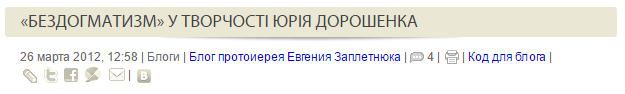 Среди «маститых архиереев» даже «архиепископ» Евстратий Зоря, по словам Заплетнюка, бледно выглядит на фоне Дорошенко: «после него в УПЦ КП больше не было людей, способных на таком высоком уровне подавать, а главное – генерировать качественный и позитивный информационный продукт. Единственный известный (потому что официальный) автор из УПЦ КП Евстратий Зоря считает церковную журналистику исключительно орудием созидания собственной карьеры и не более. Хорошо заметно, как с каждой новой наградой и каждым очередным иерархическим повышением его тексты становятся все более поверхностные, да и появляются в печати все реже. Ему уже становится просто неинтересно мусолить одни и те же пресные аргументы много лет подряд. Старые надоели, а новых ему никто так и не придумал. Он не умеет порождать что-то новое самостоятельно».