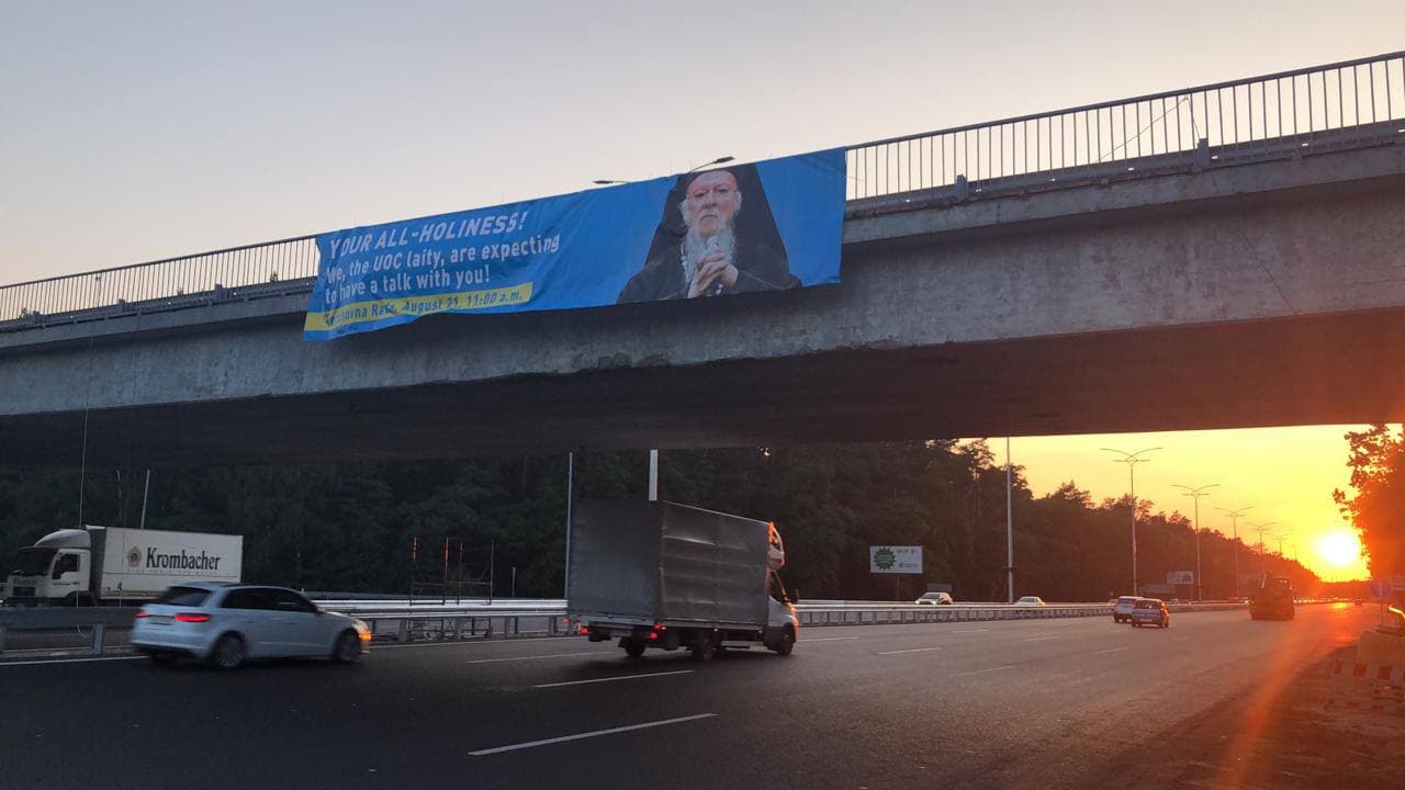 По пути следования кортежа патриарха Варфоломея из аэропорта в Киев таких групп было несколько. И он их не мог не видеть. Были и огромные баннеры, на которых верующие приглашали его на встречу.