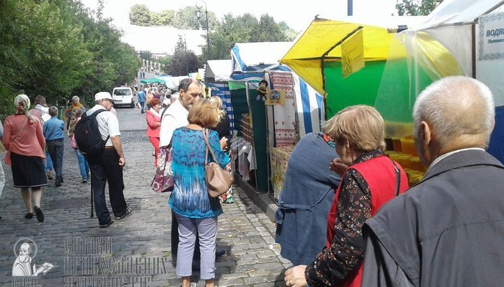 Союз православних журналістів вже повідомляв про офіційне відкриття напередодні Успенського посту цього традиційного і популярного серед городян столиці «солодкого» заходу. Показово і те, що в цьому році виставка-ярмарок – ювілейна і проводиться 10-й рік поспіль. Вона буде працювати до 21 серпня у критому переході від площі Ближніх печер до Верхньої Лаври, а також біля нового пам'ятника преподобним Антонію та Феодосію Печерським на вулиці, що веде до Дальніх печер. Тут і "поярморкував" журналіст СПЖ.