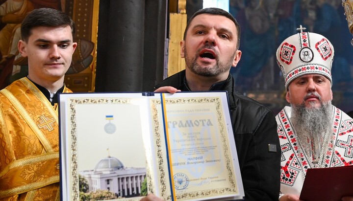 31 січня у відібраному у вірян УПЦ Успенському соборі Володимира відбулася добре срежисована урочиста подія, на яку привезли близько 300 людей з усіх храмів ПЦУ міста та інших населених пунктів. Очолив «першу літургію українською мовою» Сергій Думенко. Його супроводжувала верхівка місцевої влади, а також народний депутат Ігор Гузь. І ось його слова нас особливо вразили. Стоячи на амвоні собору поруч з Думенком, Гузь видав промову, яку можна вважати зразком розпалювання релігійної ненависті.