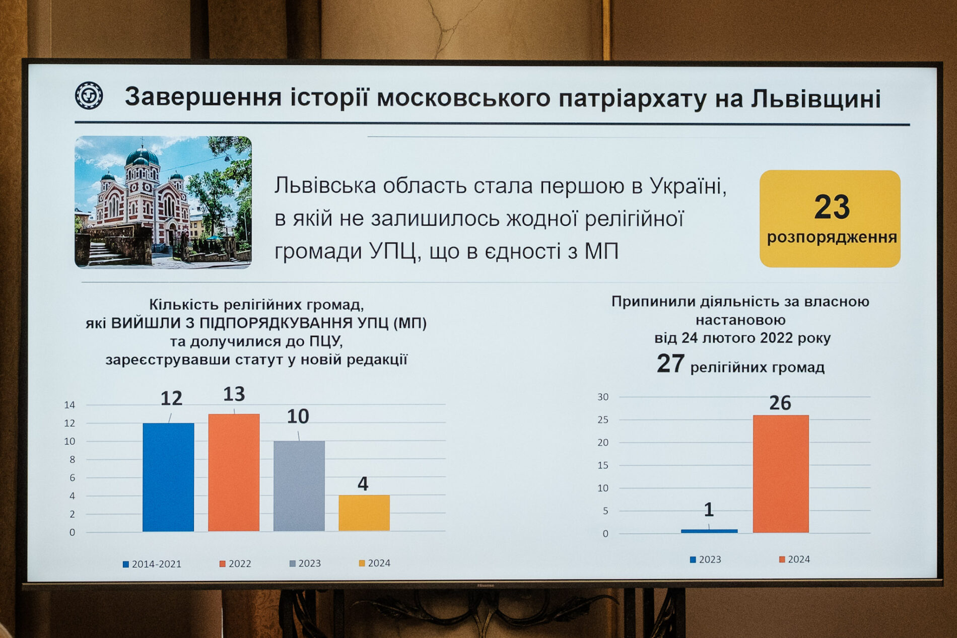 Голова департаменту культури, національностей та релігій Львівської ОВА Ірина Гаврилюк розповіла, що у 2024 році до ПЦУ «перейшли останні 4 громади УПЦ», а ще 27 «припинили діяльність за власним рішенням». Ви уявляєте? Ходили люди до храмів поколіннями, і раптом – як відрізало, вирішили «добровільно припинити».
