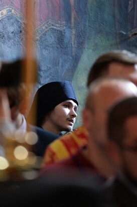 Святіший Патріарх Кирил звершив освячення храму святих рівноапостольних Кирила та Мефодія в келійному корпусі, збудованому в 1885 році, а потім очолив служіння молебню в цьому храмі.
