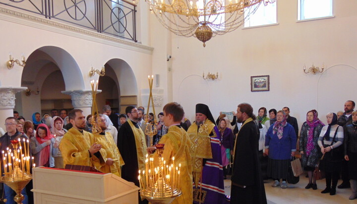За богослужінням молились паломники, які в період з 28 вересня по 6 жовтня візьмуть участь у поїздці до Ізраїлю. Ця поїздка організована Паломницьким Центром Української Православної Церкви.