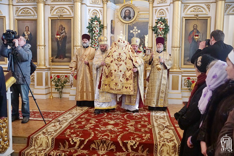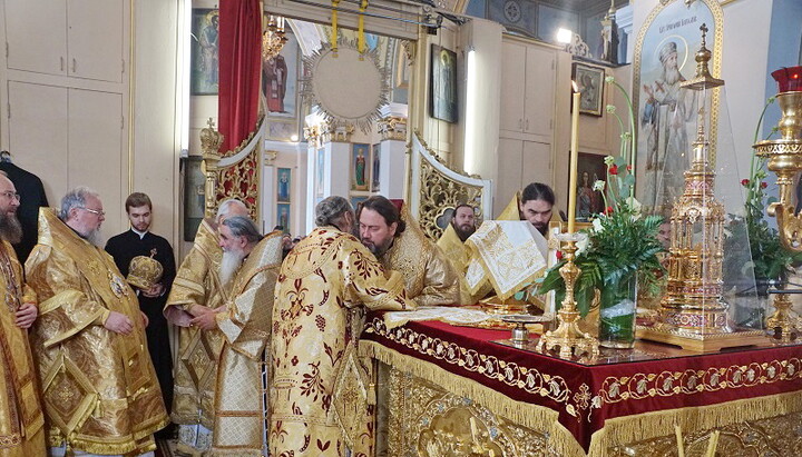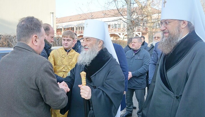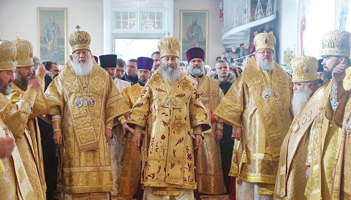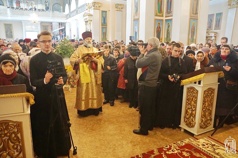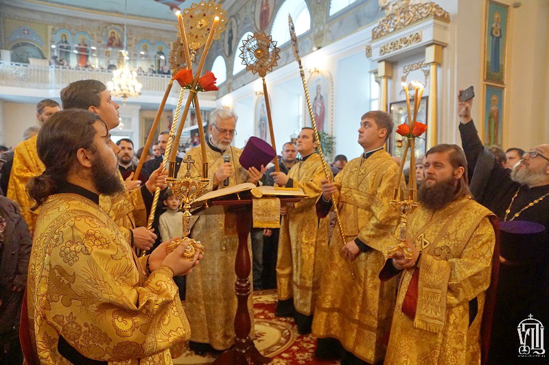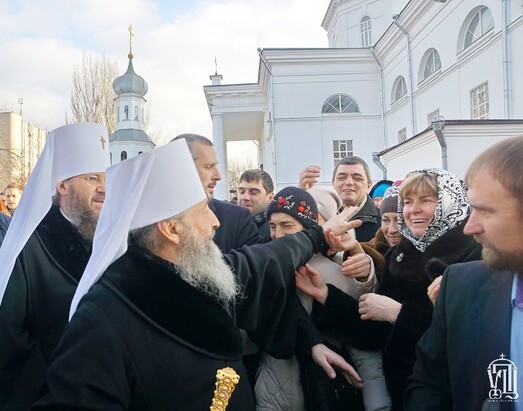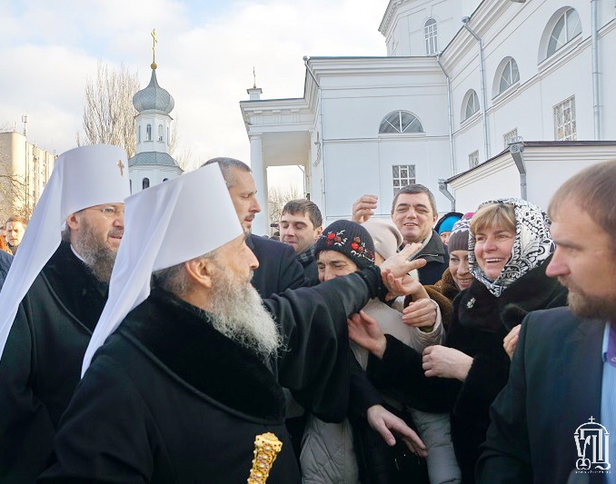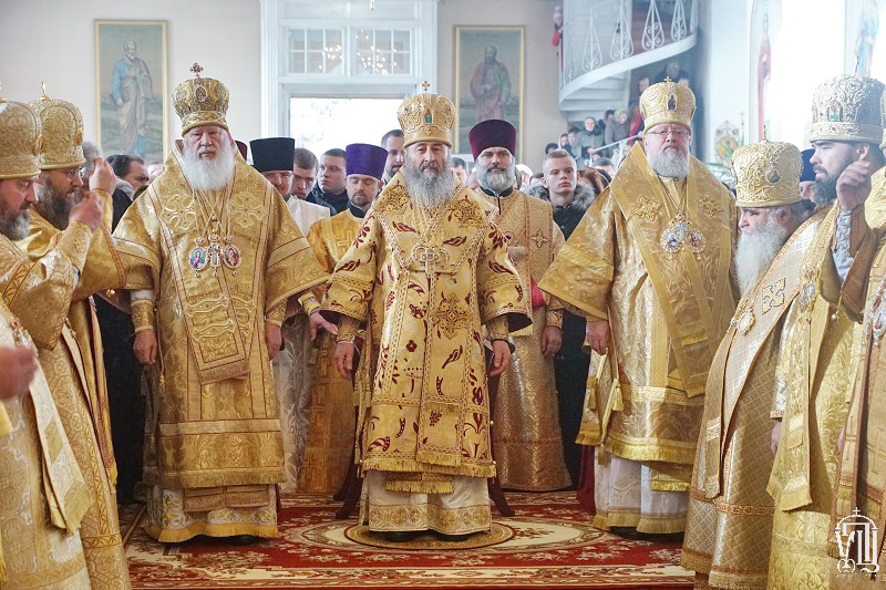 Перед початком богослужіння біля стін собору Предстоятеля зустрічали представники влади міста та численні віруючі. За богослужінням молилися духовенство з різних єпархій Української Православної Церкви і численна херсонська паства.