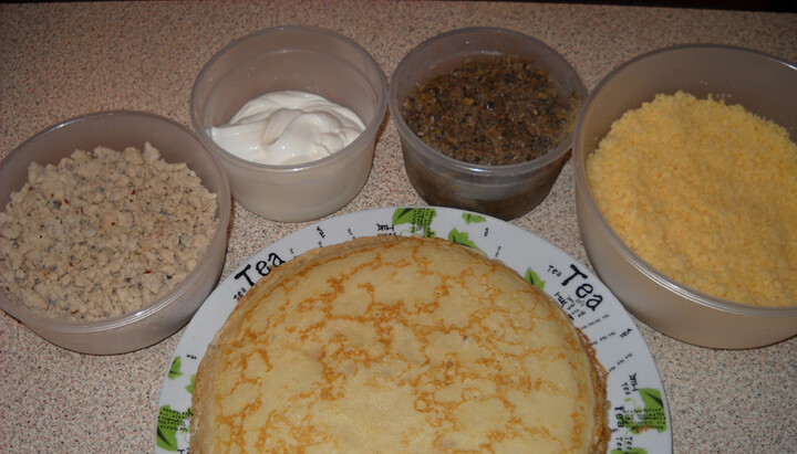Всі складові начинки готові. Приступаємо до збірки «курника».