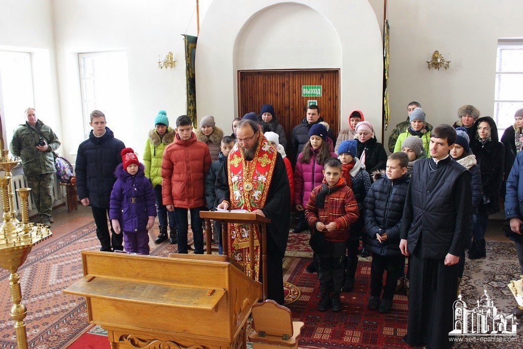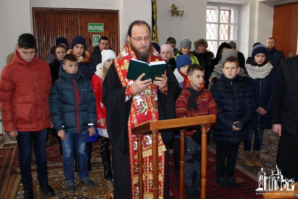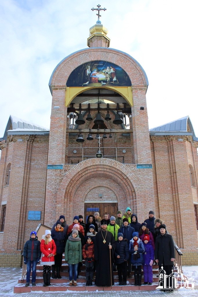 У кафедральному соборі на честь Різдва Христового владика Нікодим звершив молебень за подорожуючих та окропив дітей святою водою. Також кожен з них отримав у благословення Його Високопреосвященства іконки Ангела Хранителя, а також отримали від нього пораду – помолитися в святих Лаврах про своїх рідних і близьких та за мир в Україні.