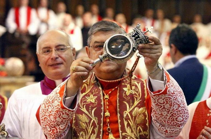 Відомо, що тричі на рік на реліквіях шанованого християнами святого Януарія відбувається чудо розрідження засохлої рідини, яка вважається його кров'ю. Чудо відбувається під час виймання закритого сосуду, у якому зберігається кров, та розміщення його біля релікварія із головою Януарія у кафедральному соборі Неаполя.