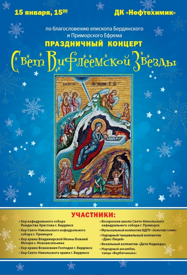 У вівторок 10 січня пройде Фестиваль духовної музики та піснеспівів «Зірка Вифлеєму» у концертному залі ДК ім. Горького в місті Ровеньки (Луганська єпархія). У ньому візьмуть участь творчі колективи загальноосвітніх шкіл, вокальні ансамблі різних будинків культури міста і навколишніх селищ, а також вихованці недільних шкіл та церковні хори. Початок фестивалю о 14.00, вхід вільний.