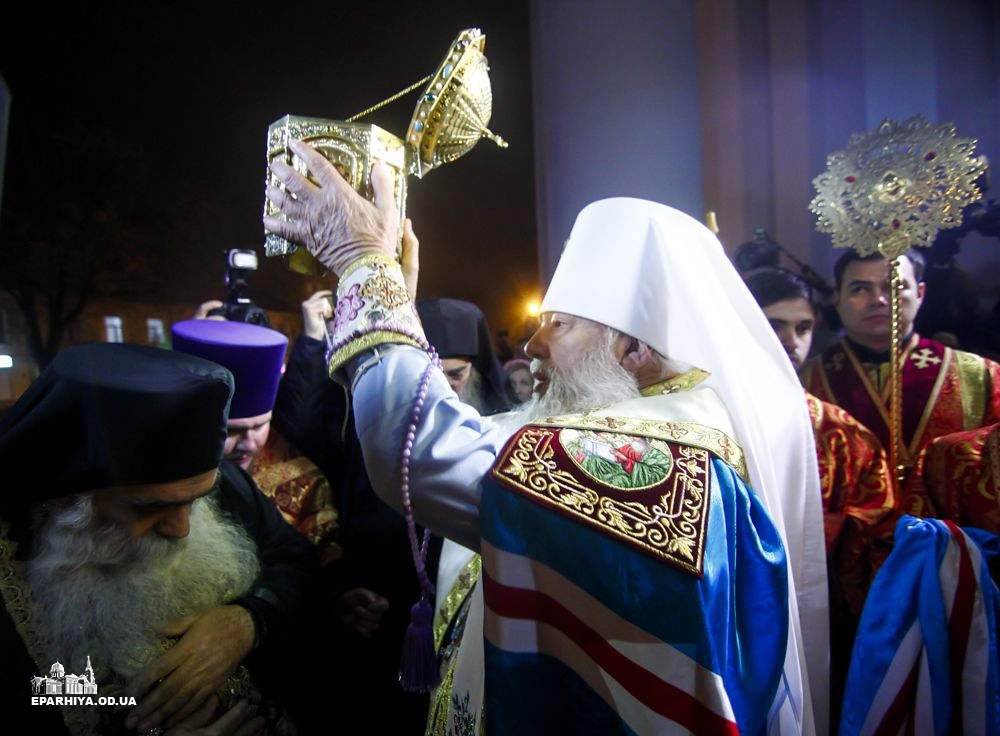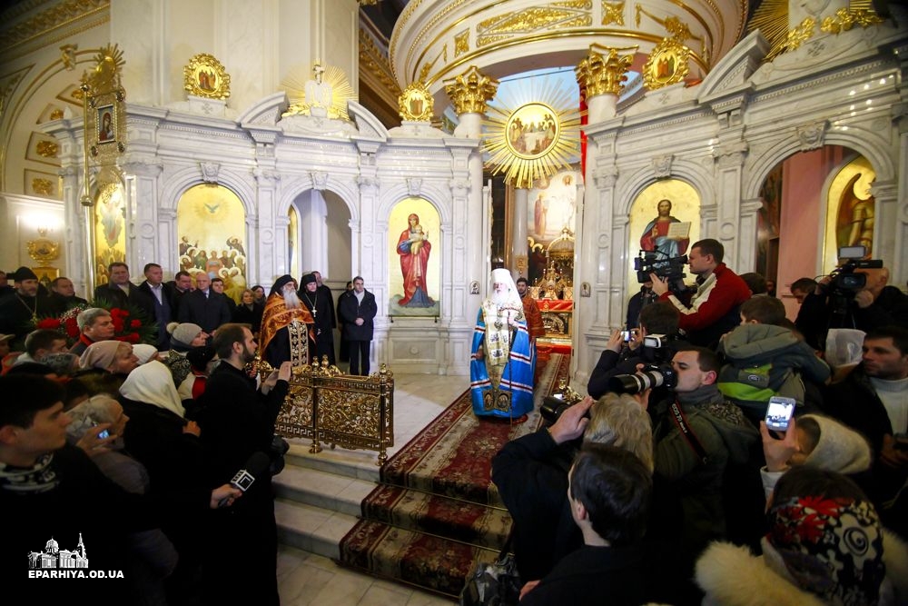 Біля духовного центру Причорномор'я – Спасо-Преображенського кафедрального собору м. Одеси, цю велику святиню православного світу зустрічали тисячі віруючих на чолі зі своїм архіпастирем – Високопреосвященнішим Агафангелом, митрополитом Одеським і Ізмаїльським.