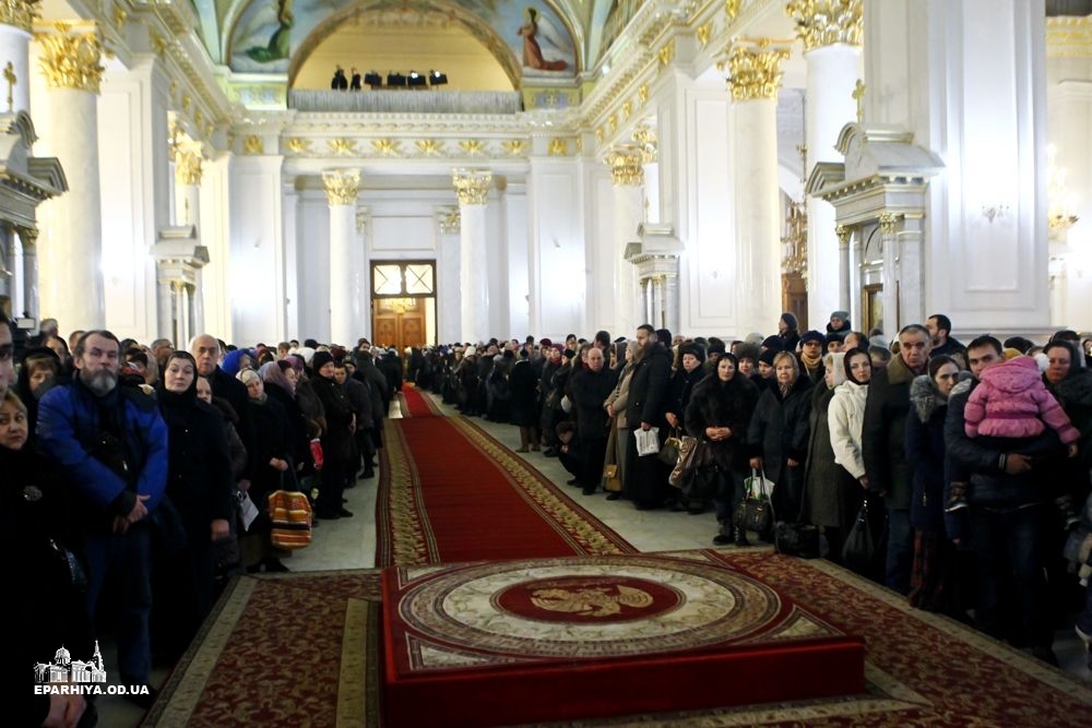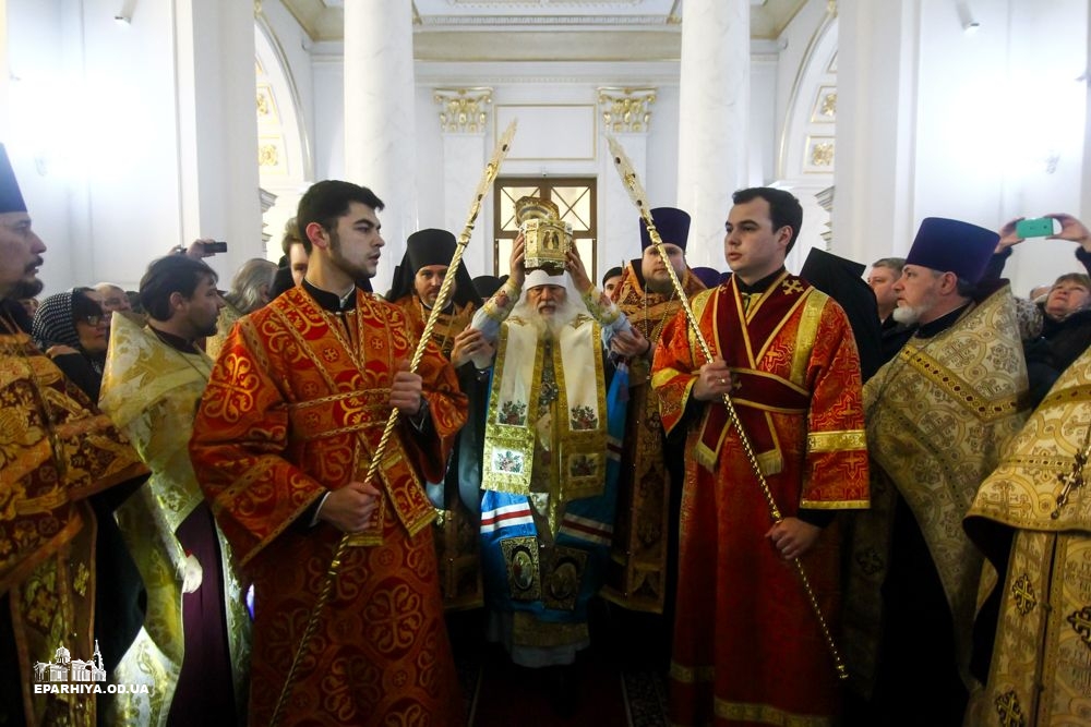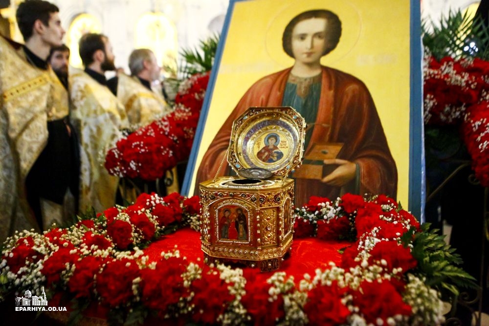 При великому скупченні віруючого народу, митрополит Одеський і Ізмаїльський Агафангел зустрів ковчег з мощами великомученика і цілителя Пантелеймона у Спасо-Преображенському кафедральному соборі міста Одеси, після чого звершив молебень святому у співслужінні понад ста священнослужителів єпархії.