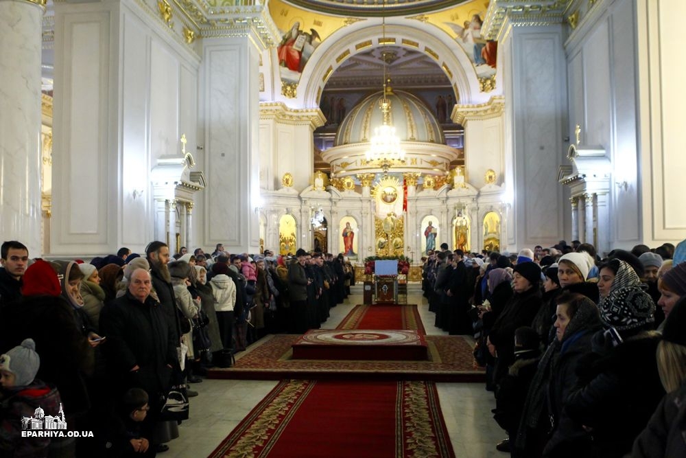 У своєму архіпастирському слові Владика сказав, що «сьогодні у нас, присутніх тут, у духовному серці Одеси – відродженому Спасо-Преображенському соборі, як і у всіх одеситів, велика радість. Зі Святої Афонської Гори, уділу Пресвятої Богородиці, з монастиря Святого Павла в наш богохранимий град прибула велика святиня – чесна глава святого великомученика і цілителя Пантелеймона, яка зберігається там протягом багатьох століть».