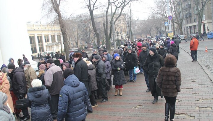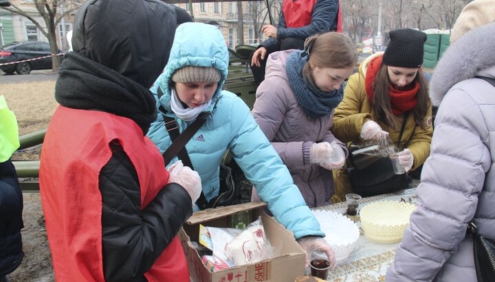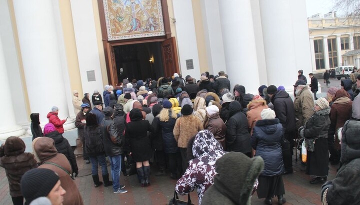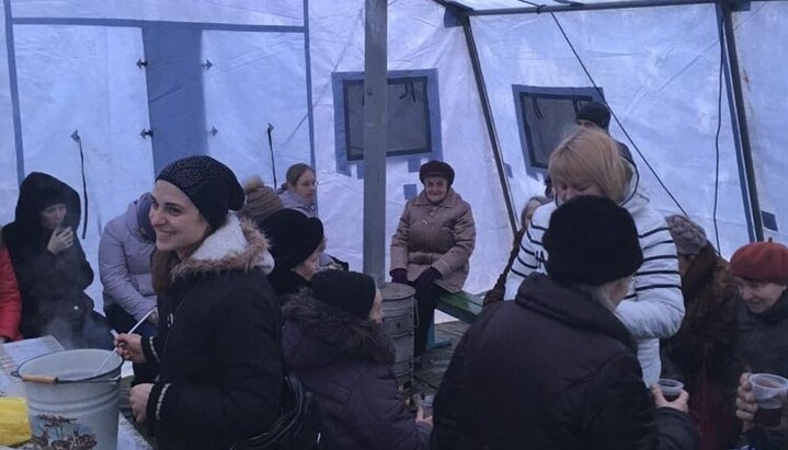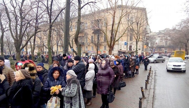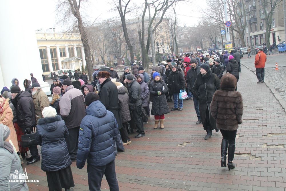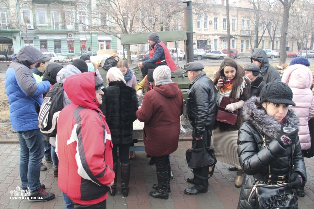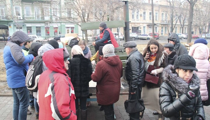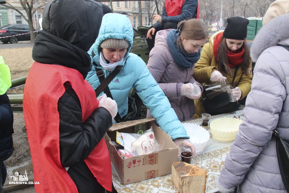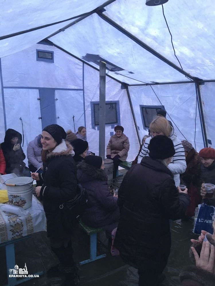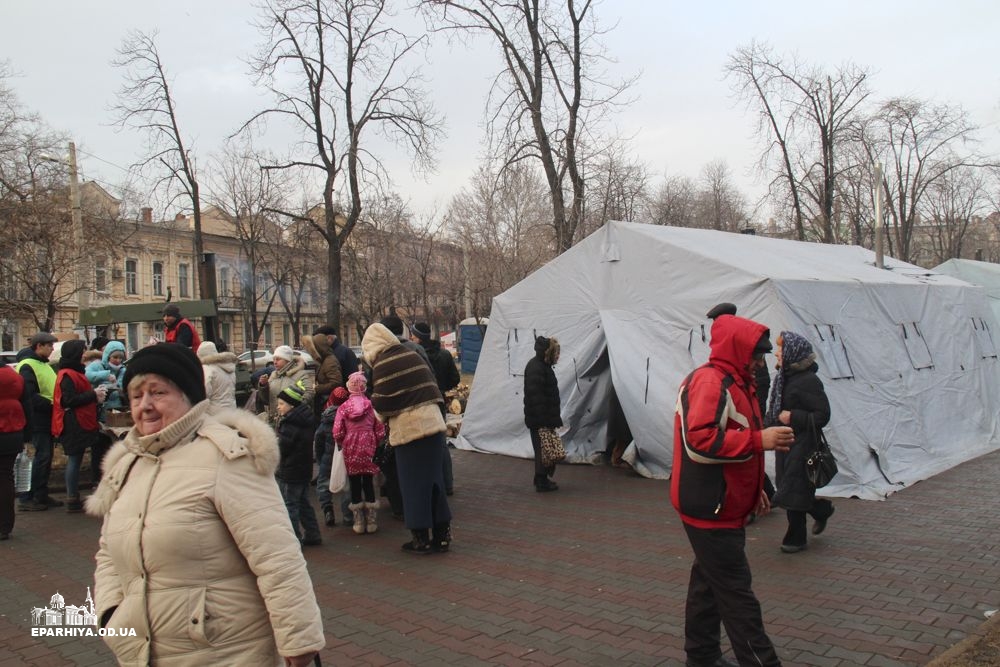 Для полегшення цього очікування з благословення митрополита Агафангела силами Одеської мерії і православних волонтерів були розгорнуті намети, де кожен бажаючий може погрітися та випити чашку гарячого чаю.
