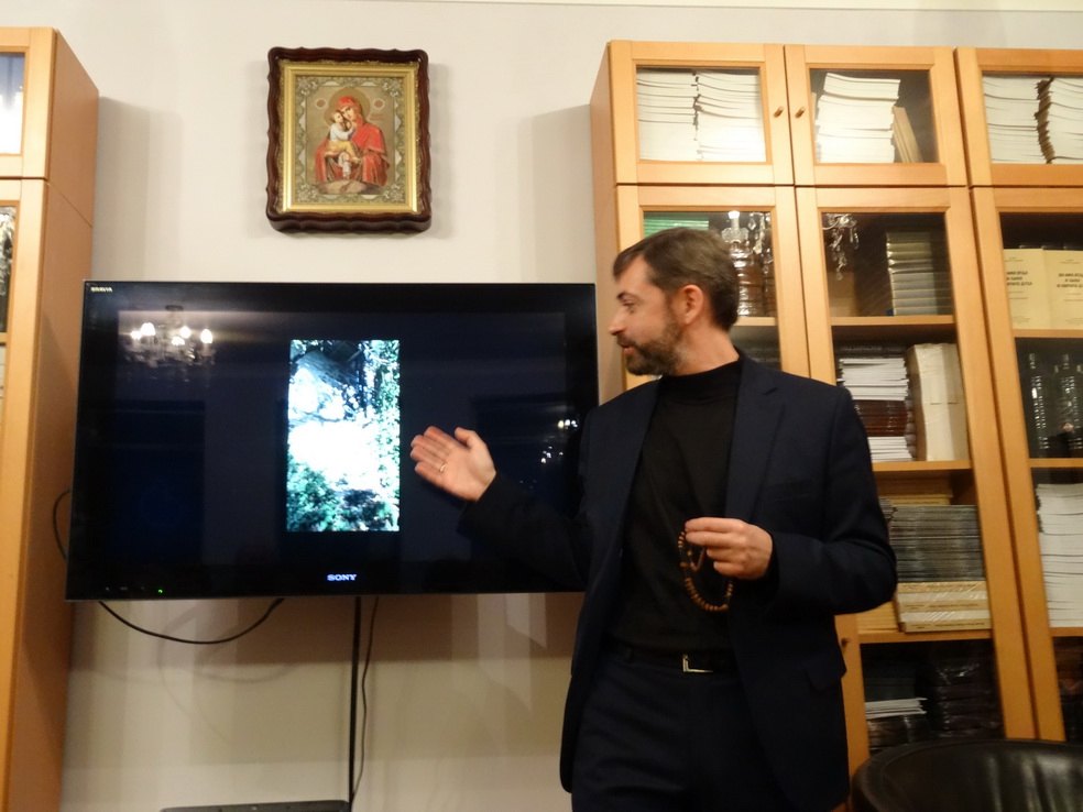 Під час вечора перед присутніми виступив директор МІАСУ Сергій Шумило, який розповів про тисячолітні зв'язки Київської Русі та Афону, провів презентацію видавничих проектів УПЦ і МІАСУ. На захід прийшло понад 50 осіб, переповнений зал бібліотеки Сурозької єпархії не міг вмістити всіх бажаючих, тож деяким учасникам довелося кілька годин стояти.