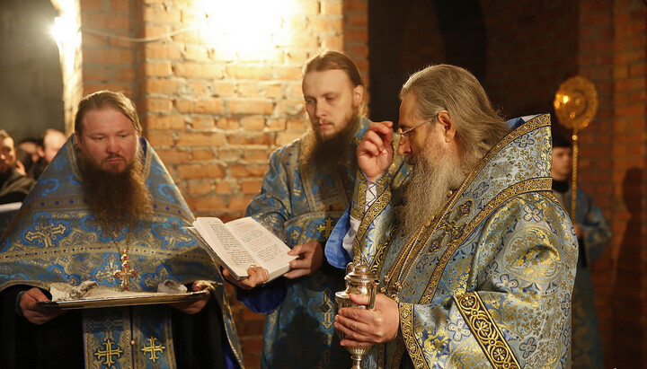 Спустившись в нижній ярус новоспорудженого храму, митрополит Святогірський Арсеній у співслужінні лаврського духовенства та в присутності численних віруючих звершив чин освячення закладного каменя.