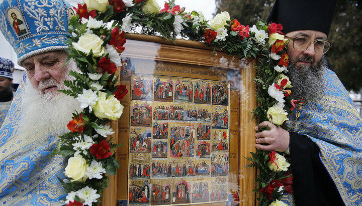По закінченні чину закладання з молебним співом величання Матері Божої віруючі хресною ходою повернулися назад у Свято-Успенський собор.