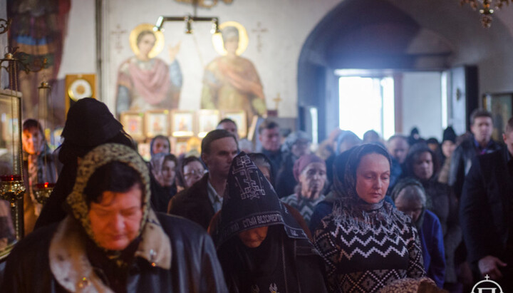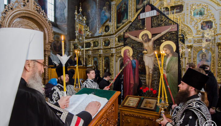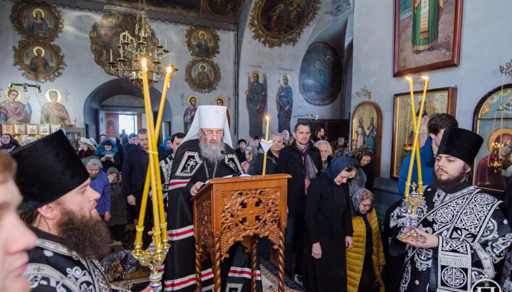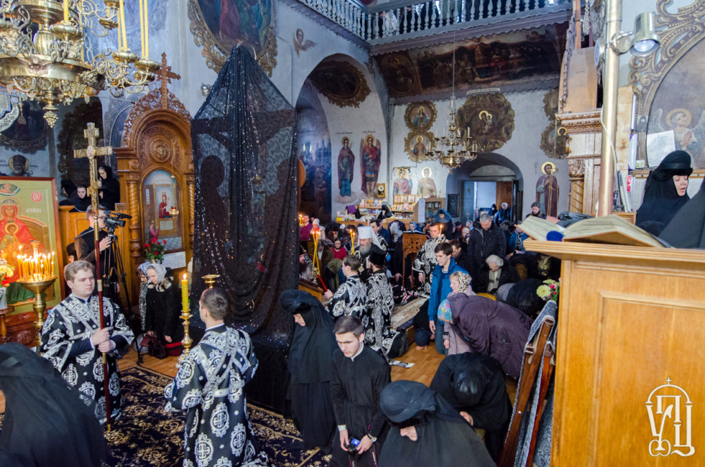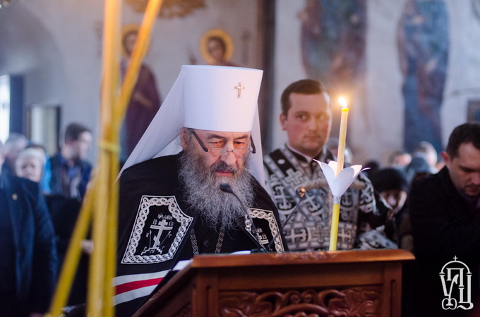 Предстоятель очолив Велике повечір'я з читанням третьої частини Покаянного канону в Свято-Вознесенському соборі. Разом з Його Блаженством молилася настоятелька обителі ігуменя Антонія з сестрами, а також численні віруючі – парафіяни та паломники Свято-Вознесенського Флорівського монастиря.