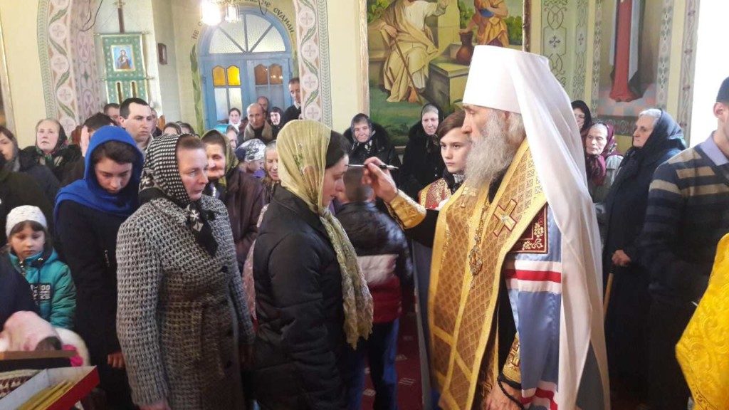 Цього дня служба пройшла мирно, всі спокійно помолилися в храмі, прийняли помазання святим маслом та подарунки від владики Сергія.