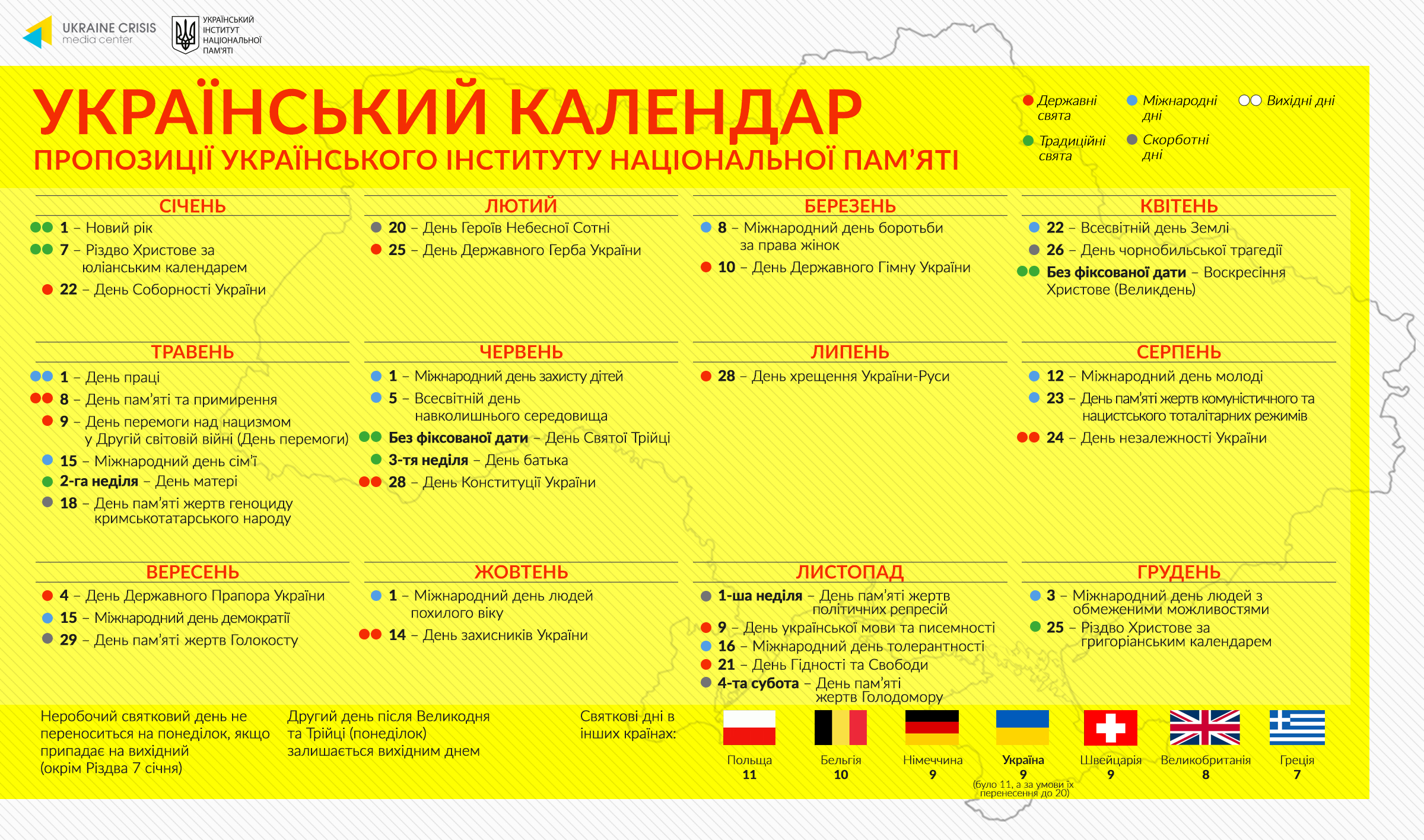 Як повідомляється, інститут «дослухався до побажань громадськості» та включив до проекту традиційне свято – День Святої Трійці. Другий день після Великодня та Трійці (понеділок) залишається вихідним.