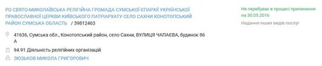 Прес-секретар Конотопсько-Глухівської єпархії УПЦ протоієрей Богдан Никитюк згадує, що ділянку для будівництва в селі Сахни храму канонічної Церкви місцева влада виділила ще у 2010 році. Проте, за ініціативи деяких політиків області, під приводом того, що громада УПЦ тільки почала збирати матеріали для будівництва, після публічного обговорення на загальних зборах села землю передали під майбутній храм Київського патріархату. Вже після цього в селі зареєстрували і Свято-Миколаївську релігійну громаду Сумської єпархії УПЦ КП.