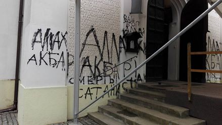 Чергові в храмі викликали поліцію. Порушника затримали, але чергові не могли (погано розмовляють чеською) зрозуміло пояснити поліції, що сталося. Затриманий буквально в них на очах помочився мало не на взуття поліцейських. Поліція його затримала і забрала. Вранці на крипті храму і на храмі були виявлені написи: «Аллах Акбар! Ваш бог – Аллах! Смерть близько!»
