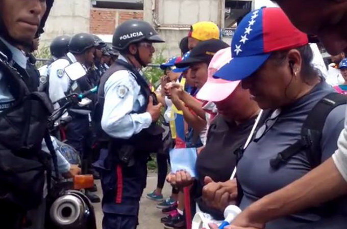 На відео група християн молиться, взявшись за руки, навпроти поліцейських, які перекрили вулицю. Християни проголошували свободу для Венесуели і цитували Писання, кажучи, що це не їхня війна, але війна Господа.