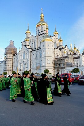 Після закінчення вечірнього богослужіння намісник Свято-Успенської Почаївської Лаври митрополит Почаївський Володимир разом із братією увійшли до Пещерного храму. Після служіння особливого молебну почався традиційний Хресний хід вулицями міста.