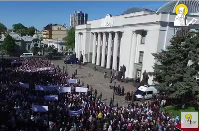 18 травня під стінами Верховної Ради України на молитовне стояння зібралися близько десяти тисяч віруючих Української Православної Церкви з різних регіонів України. СПЖ спостерігає за подією з повітря.