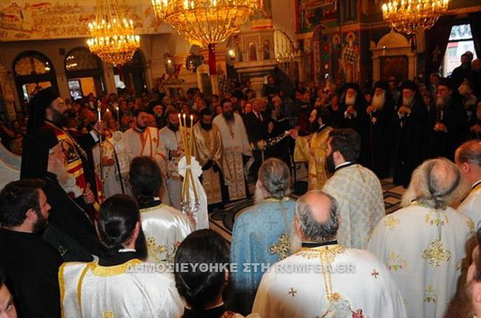 В урочистому богослужінні взяли участь митрополити Триккський і Стагонський Хризостом, Каристії і Скіросу Серафим, Касторії Серафим, Фермопільський Іоанн, Сисанія і Сіатисти Павло, Коринфа Діонісій, Арти Каллінік, Халкіди і Істії Хризостом, а також єпископ Феупольский Пантелеімон.
