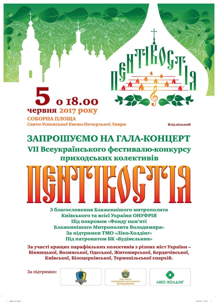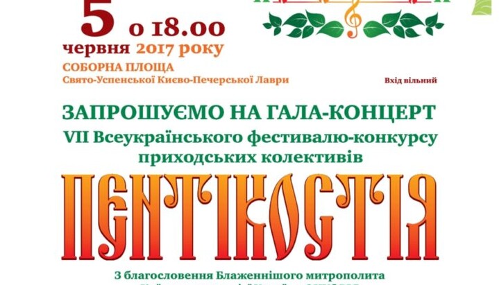 5 червня, в День Святого Духа, з благословення Блаженнішого Митрополита Київського і всієї України Онуфрія, в Свято-Успенській Києво-Печерській Лаврі відбудеться гала-концерт VII Всеукраїнського фестивалю-конкурсу «Пентікостія», повідомляє Інформаційно-просвітницький відділ УПЦ.