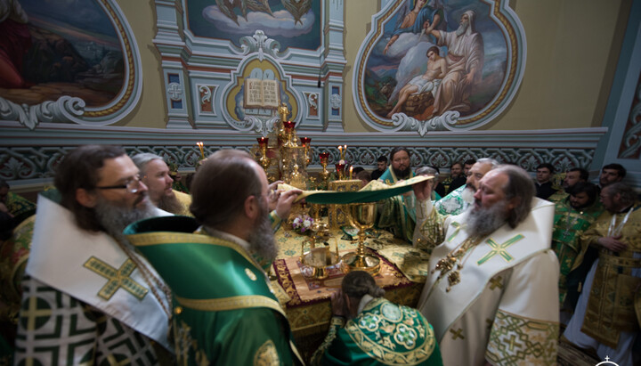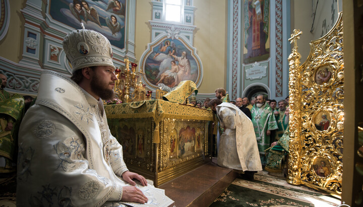Його Блаженству співслужили намісник Києво-Печерської Лаври митрополит Вишгородський і Чорнобильський Павел, керуючий справами УПЦ митрополит Бориспільський і Броварський Антоній, а також ще 17 архієреїв Української Православної Церкви.