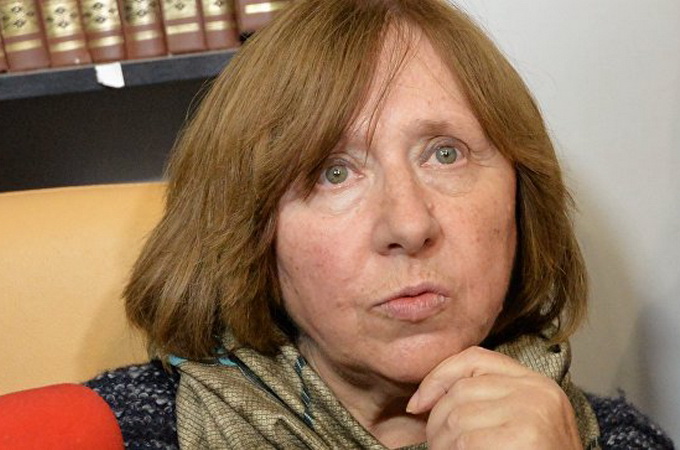 В ефірі телеканалу «Дождь» письменниця заявила, що конфлікт, подібний до конфлікту в Донбасі, може статись і в Білорусі. Як вважає Алексієвич, «дайте туди танки, зброю – і там католики почнуть вбивати православних або кого завгодно, людина – істота недосконала, їй в голову можна вкласти що завгодно».
