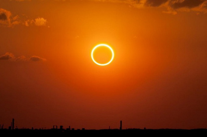 Історики припустили, що мова може бути про кільцеподібне затемнення, коли Місяць перекриває сонячний диск лише частково. Це могло спричинити появу «вогняного кільця», про яке йдеться у Старому Завіті. Той факт, що у стародавньому світі для позначення різного роду затемнень використовувалось одне й те саме слово, підтверджує цю версію.