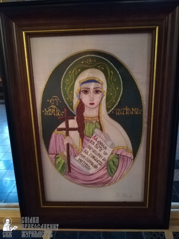 «Відчуваю зараз великий душевний трепет... наша православна святиня... такий храм... Києво-Печерська лавра – місце надзвичайно сильне, це дуже важливо для мене особисто. Я представила 18 картин, з них ікон – 15. На кожну ікону в середньому йде від півроку до 3 років. Обов'язково перед початком роботи помолюся, дотримуюсь церковних канонів, як необхідність в іконі. Спочатку я сама малюю картину-образ, вивчаю історію ікони, а вже потім беруся за голку з ниткою», – розповідає Юлія.