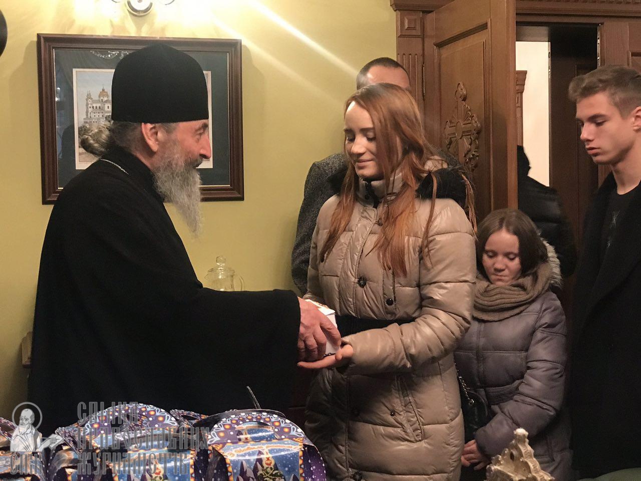 4 січня в Києво-Печерській лаврі Предстоятель УПЦ Блаженніший Митрополит Київський і всієї України Онуфрій зустрівся з дітьми-сиротами. Як передає кореспондент СПЖ, Владика привітав дітей з наступаючим Різдвом та вручив подарунки.