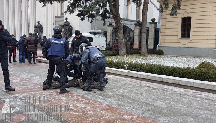 16 січня близько 9:30 під стінами Верховної Ради України розпочалась акція «Стоп реванш». Як передає кореспондент СПЖ, мітингувальники у тому числі вимагають прийняти антицерковні законопроекти. При цьому поліцейських для охорони порядку зібралося більше, ніж самих протестуючих.