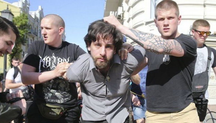 З Голосіївського монастиря радикали попрямували до посольства Бразилії, поблизу якого вони затримали бразильця Рафаеля Лусваргі та провели вулицями Києва до будівлі СБУ.