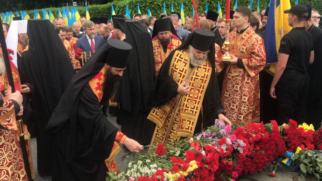 Насельники Києво-Печерської лаври, духовенство Київської єпархії, студенти Київської духовної академії і семінарії пройшли урочистою ходою до місця проведення панахиди.