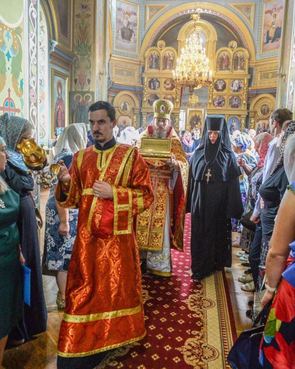 Численне духовенство та вірні УПЦ проводили в монастир на честь Афонської ікони Божої Матері ковчег з мощами священномученика Киприяна і мучениці Іустини.