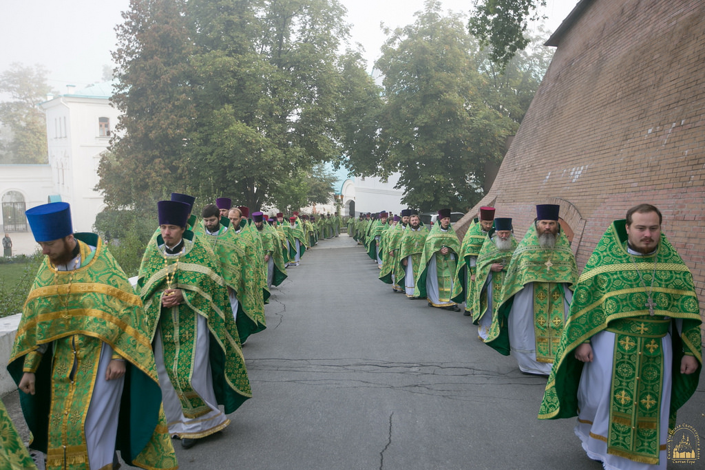 24 вересня в Свято-Успенському соборі обителі відбулася урочиста зустріч митрополита Луганського і Алчевського Митрофана, який очолив святкову Божественну літургію. Архієрею співслужили єпископи УПЦ, а також лаврське духовенство та гості в священному сані, які прибули на торжества в Святі Гори. Загалом у Божественній літургії святкового дня взяли участь понад 200 священиків. Піснеспіви богослужіння виконувалися двома хорами лаврської братії.