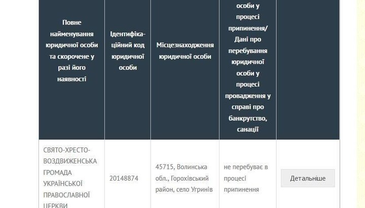 Звідки у переліку релігійних організацій Волинської області взялася ця інформація, невідомо. Запит до реєстру юридичних осіб показав, що в базі даних Мін'юсту громада УПЦ села Угринів залишається чинною і не перебуває в процесі припинення. Як пояснив настоятель Свято-Хрестовоздвиженської парафії протоієрей Ростислав Сапожник, це помилкова інформація і не могла бути внесена до офіційного реєстру.