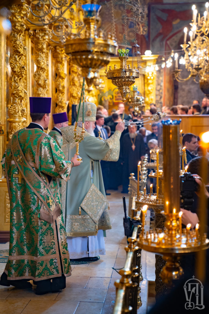 Очолив святкову Божественну літургію Святіший Патріарх Московський і всієї Русі Кирил у співслужінні архієреїв Руської Православної Церкви, представників Помісних Церков, духовенства обителі і гостей у священному сані.